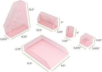 Blu Monaco Pink Desk Organizer For Women 3 Piece Desk Import