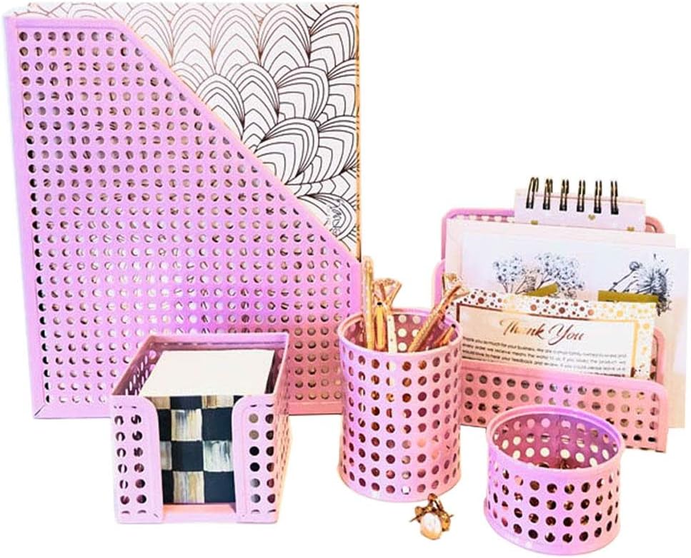 Amazon Com Pink 5 Piece Metal Desk Accessories Desk Organizer