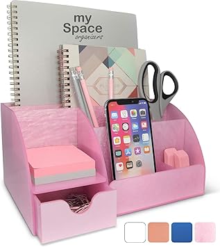 Blu Monaco Pink Desk Organizer With Drawer For Home Or Office