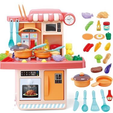 Children Play Kitchen Set Toy With Play Food And Cooking
