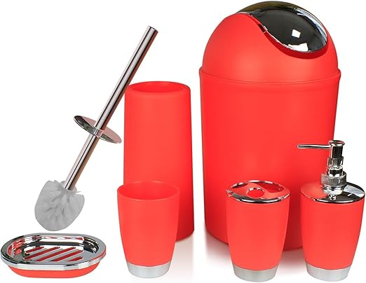 Amazon Com Red Bathroom Accessories Set 6 Pieces Plastic Bathroom