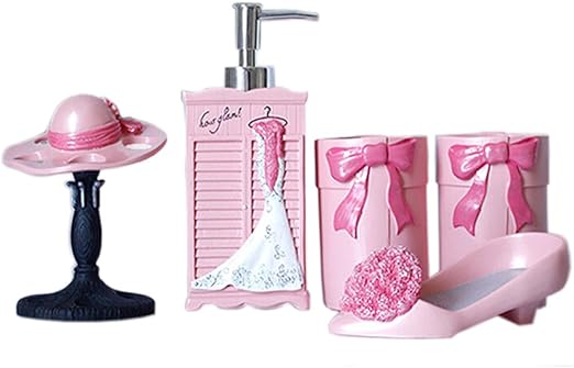 5pcs Fashion Lady Pink Red Bathroom Accessories Set Soap Dish