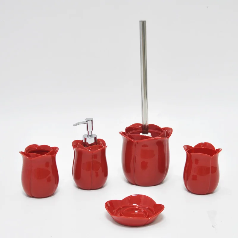 5 Pcs Rose Color Flower Shaped Red Bathroom Accessories Set Buy
