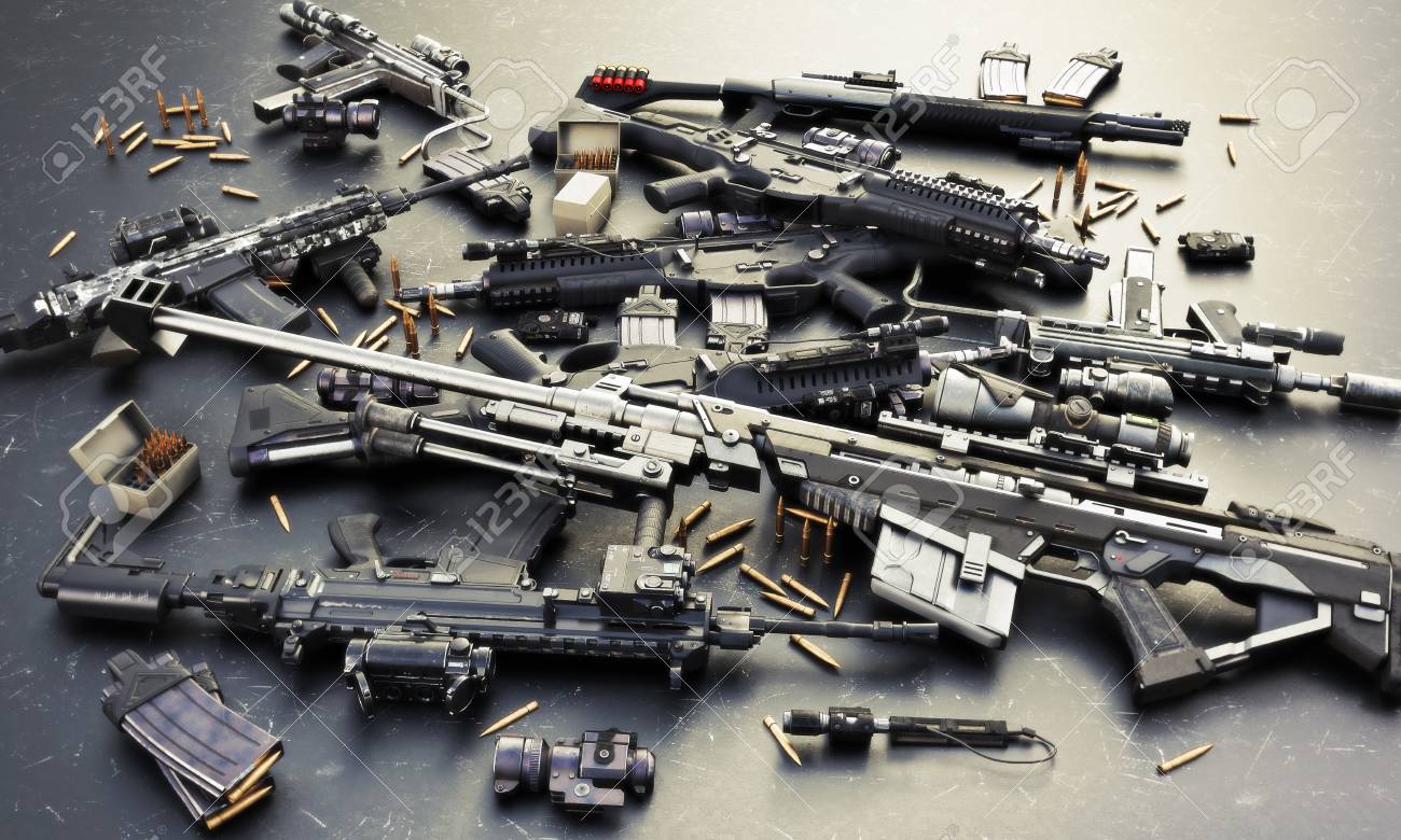 Weapons Stash With Automatic Assault Rifles Accessories And