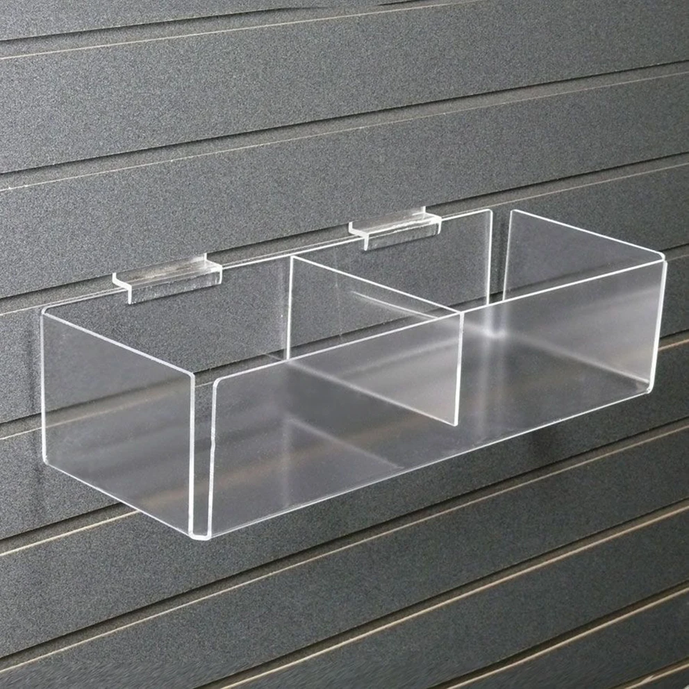 Two Compartment Slatwall Bin Clear Acrylic