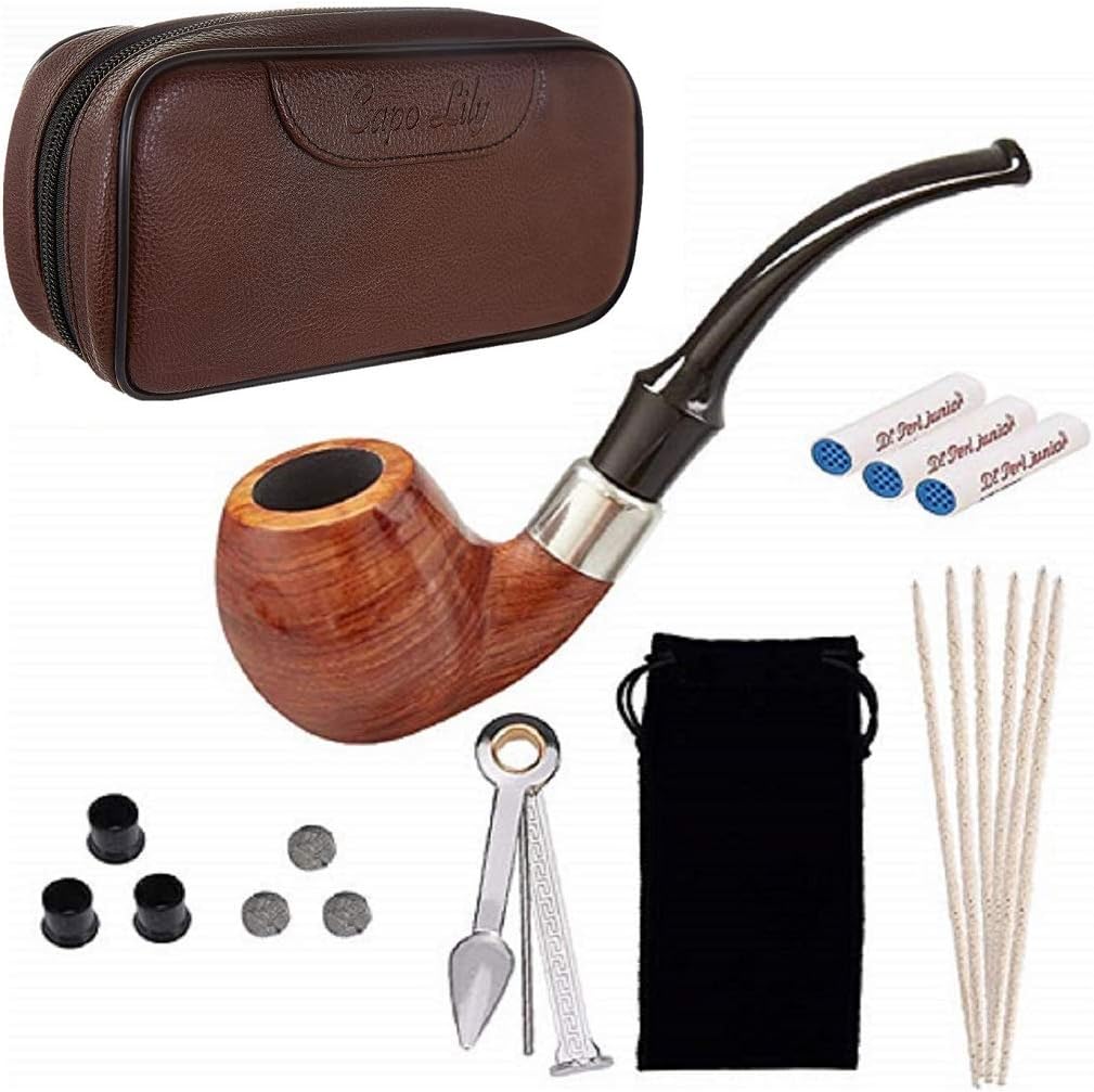 Amazon Com Yannabis Tobacco Pipe Set Pear Wood Smoking Pipe And Brown Pipe Pouch Kit With Smoking Accessories Health Personal Care