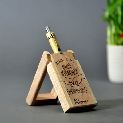 Unique Novelty Wood Leather Abnormal Desk Pen Box With Name Card