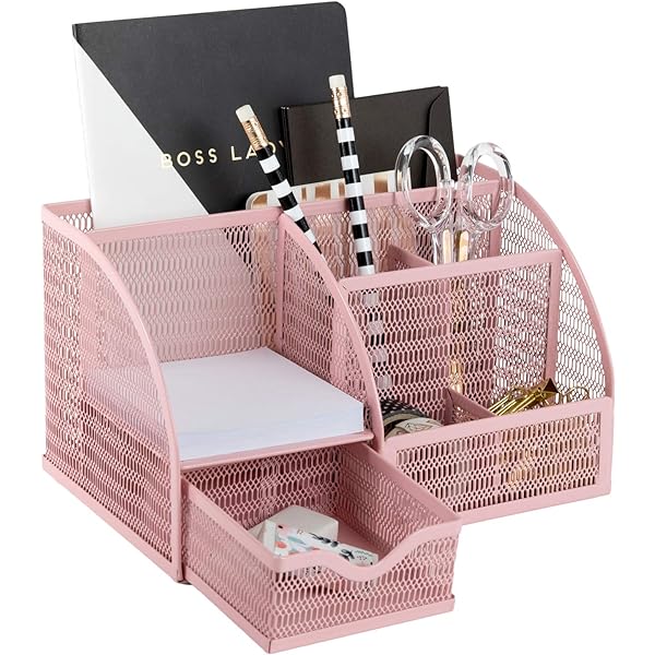Blu Monaco Unique Metal Pink Desk Organizer With Drawer Desk