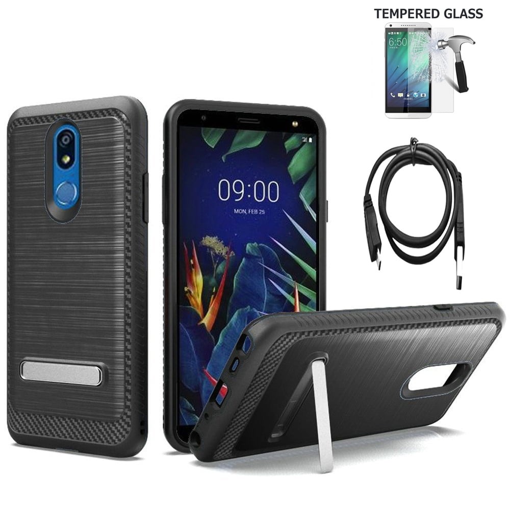 Bundle 3in1 Accessories For Lg Stylo 5 Case Q720cs Verizon Stylo 5v Case Lg Stylo 5 Plus Case Brush Shockproof Dual Layered Cover Brush Magnetic Stand Black Tempered Glass C Usb