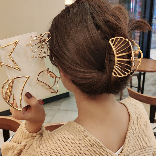 Fashion Women Gold Geometric Simple Alloy Hollow Hair Clips