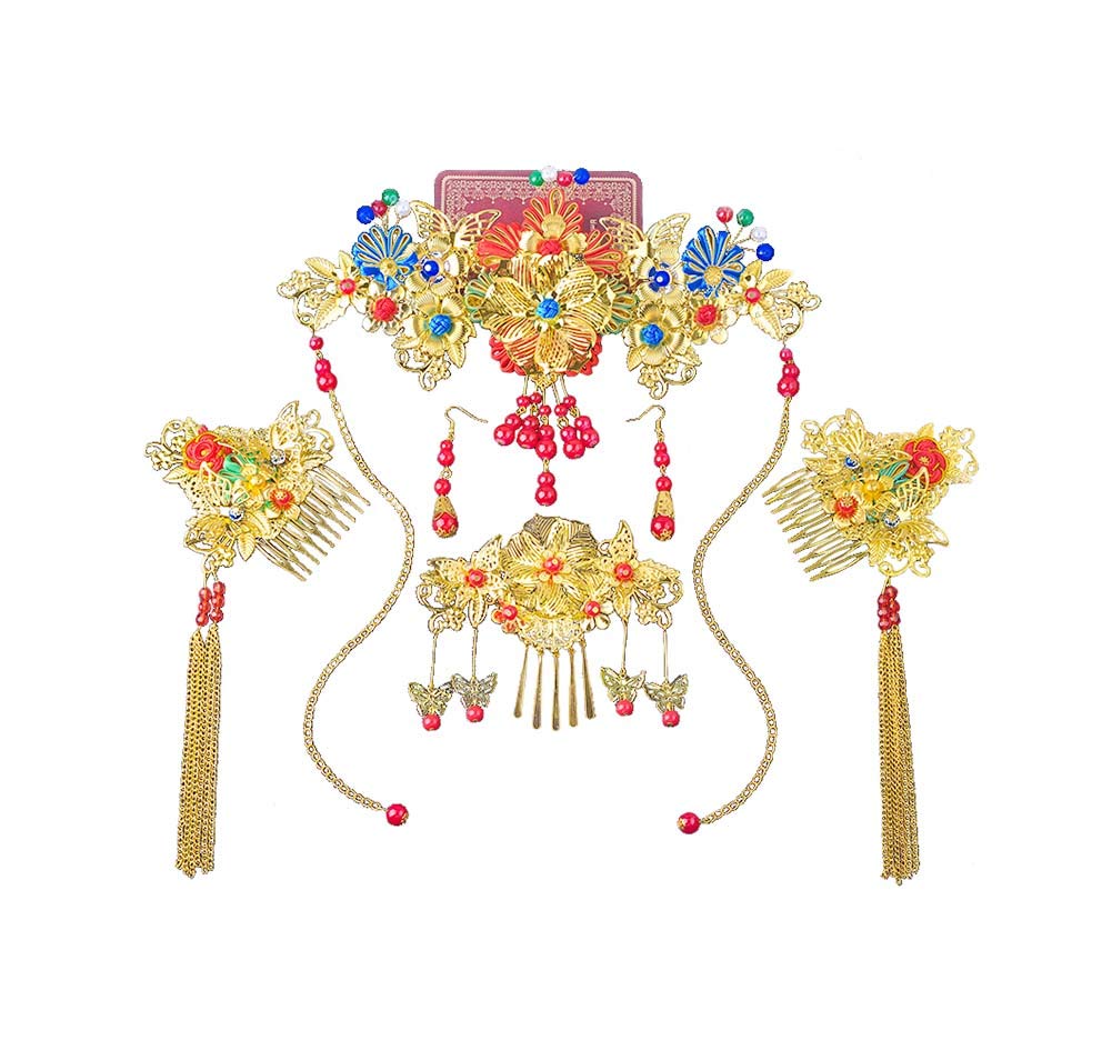 Traditional Chinese Wedding Hair Accessory Gold Butterfly Hair
