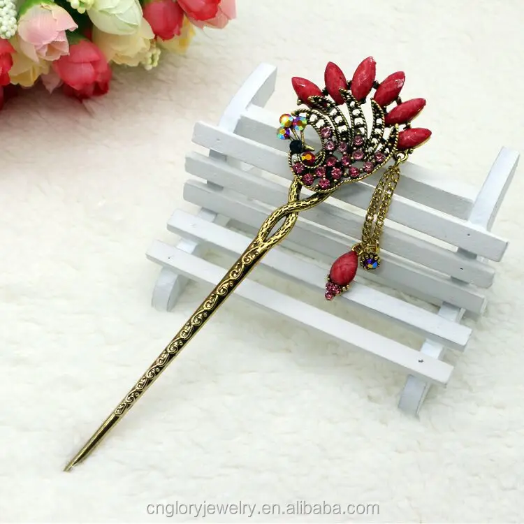 Vintage Hair Accessories Peacock Shaped Crystal Hairpin Wholesale